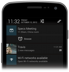A notification is a message you can display to the user outside of your application's normal UI. When you tell the system to issue a notification, it first appears as an icon in the notification area. To see the details of the notification, the user opens the notification drawer. Both the notification area and the notification drawer are system-controlled areas that the user can view at any time.